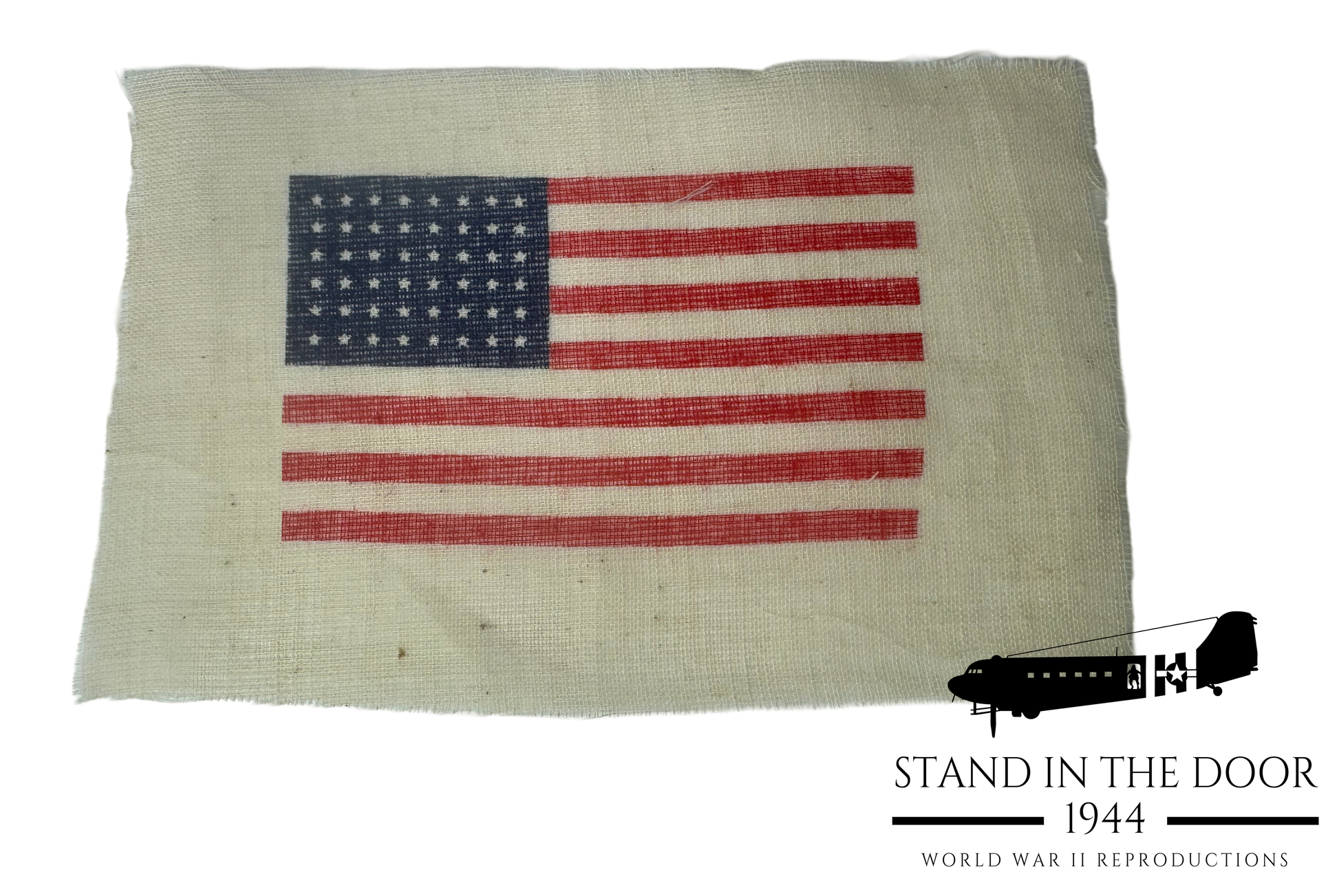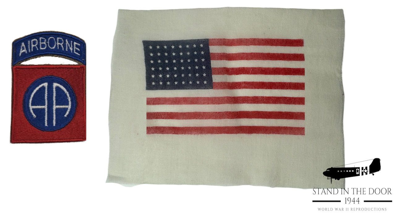 Gauze flags are one of the most important elements of a 82nd Airborne impression. Most reproductions today are printed on plain cotton muslin fabric which is much more dense than original gauze flags.