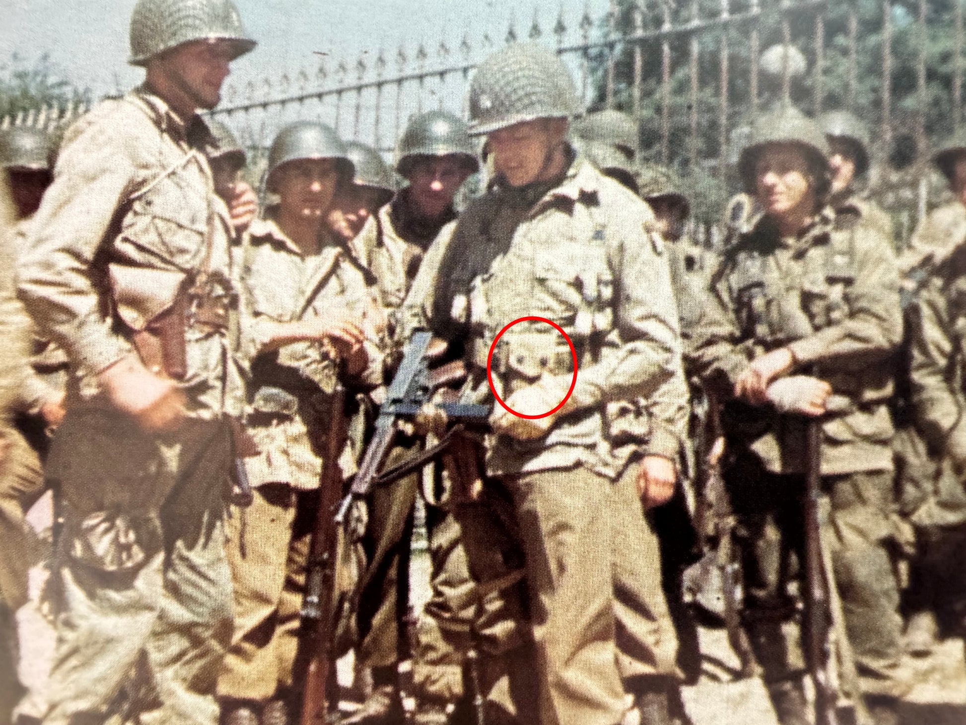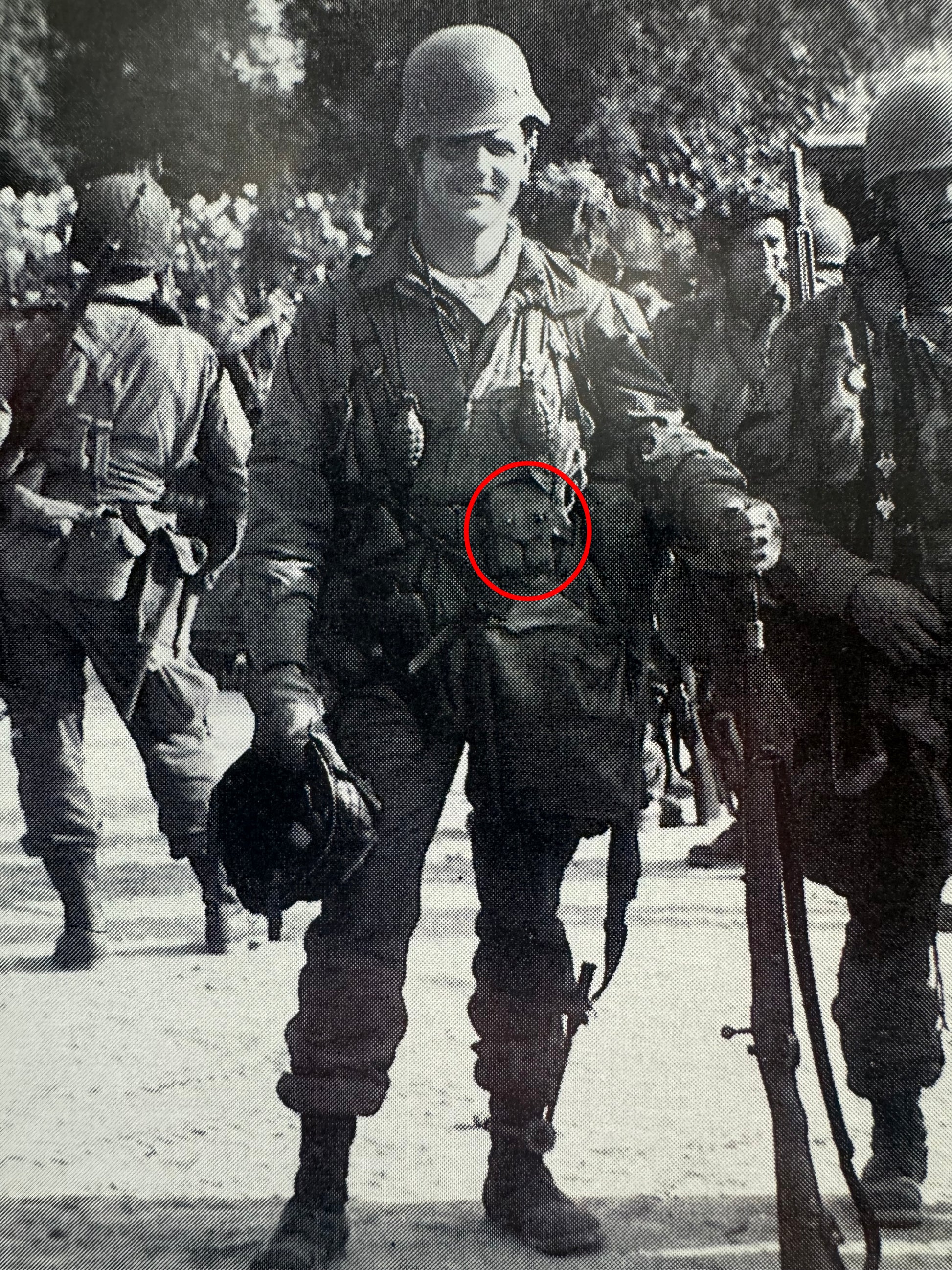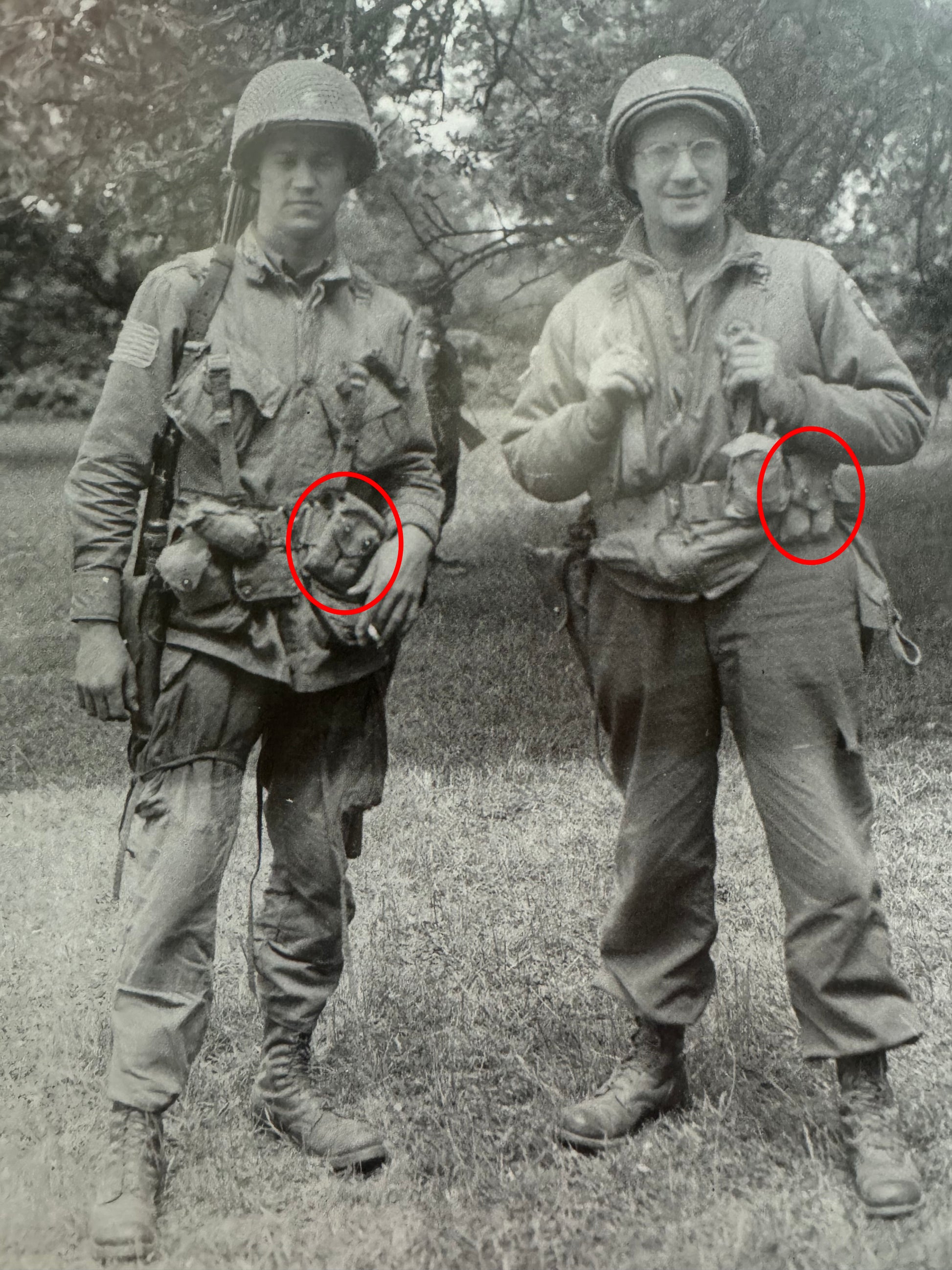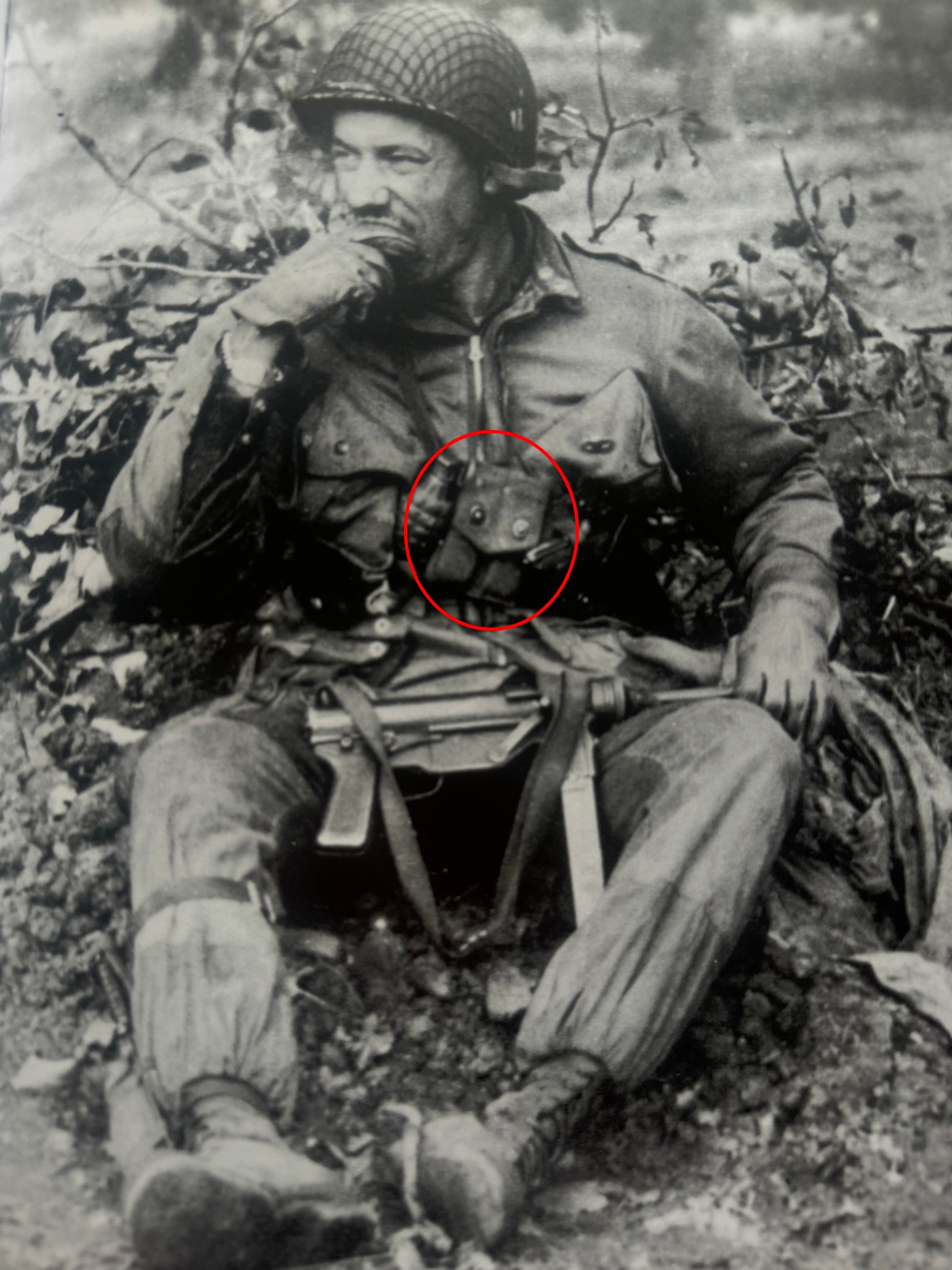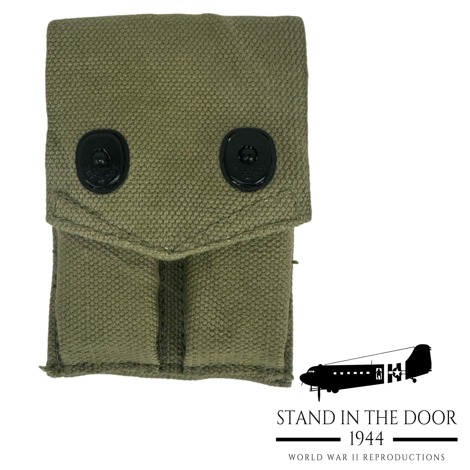 Of course there was no "official" airborne 1911 pouches. Troopers simply used what they were issued, however extensive pictorial research shows that this style of 1911 pouch was overwhelmingly common in both the 82nd and 101st Airborne for both the Normandy and Holland campaigns. These pouches were so common in fact that you are hard pressed to find any of the other styles being used (although you can find a handful). I can't tell you why these pouches were so common other than these were simply what were in the greatest supply in 1944.