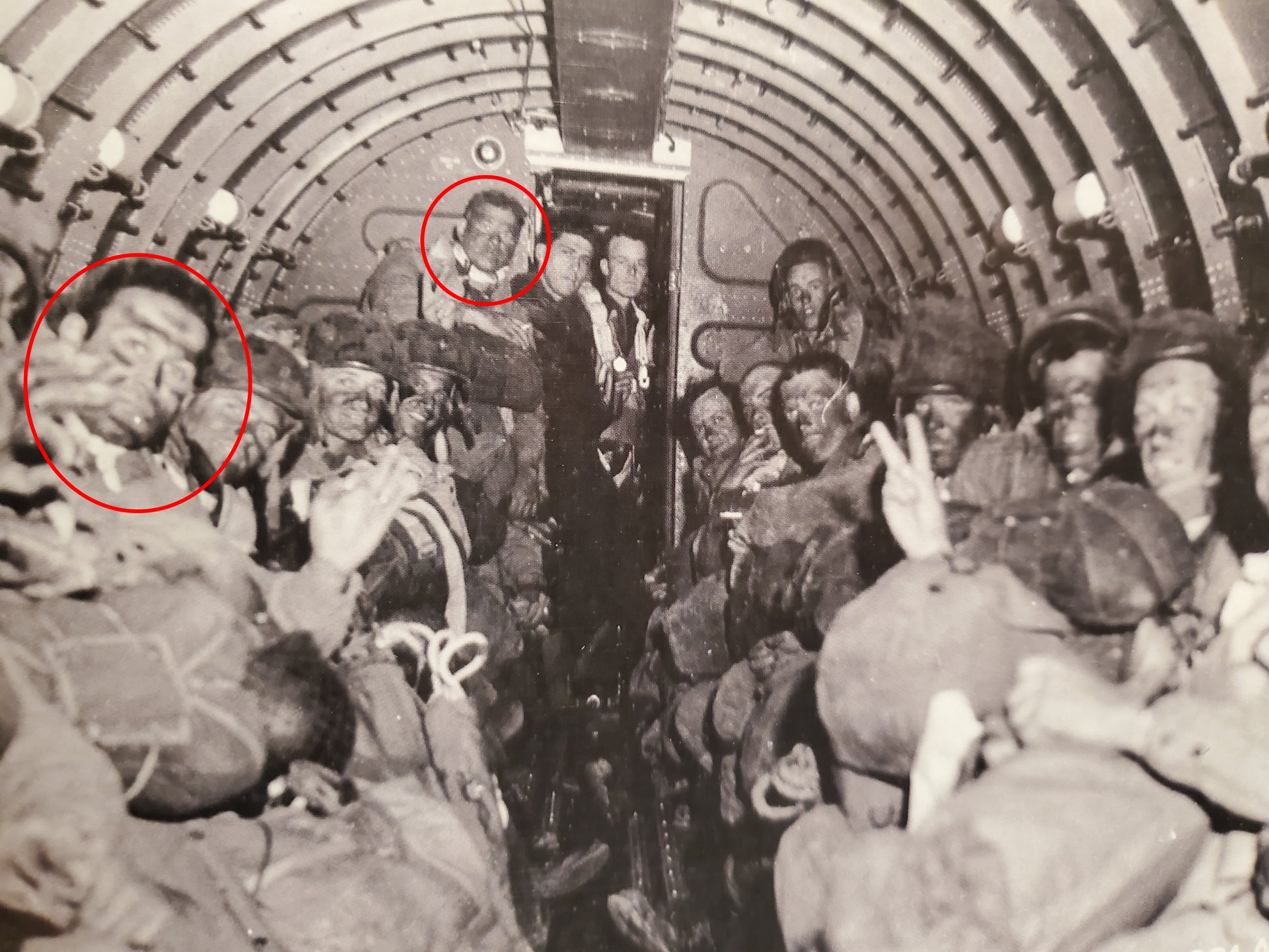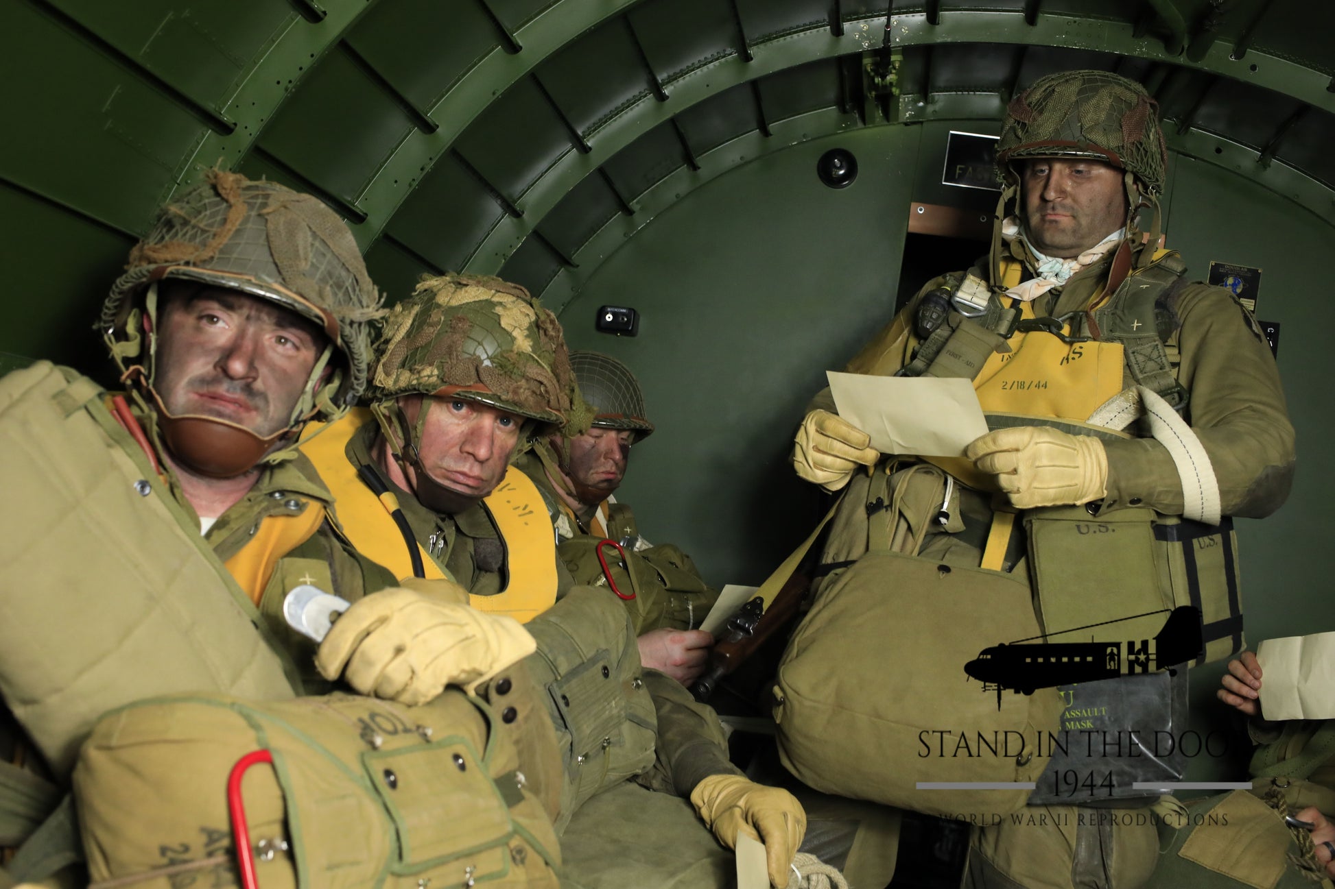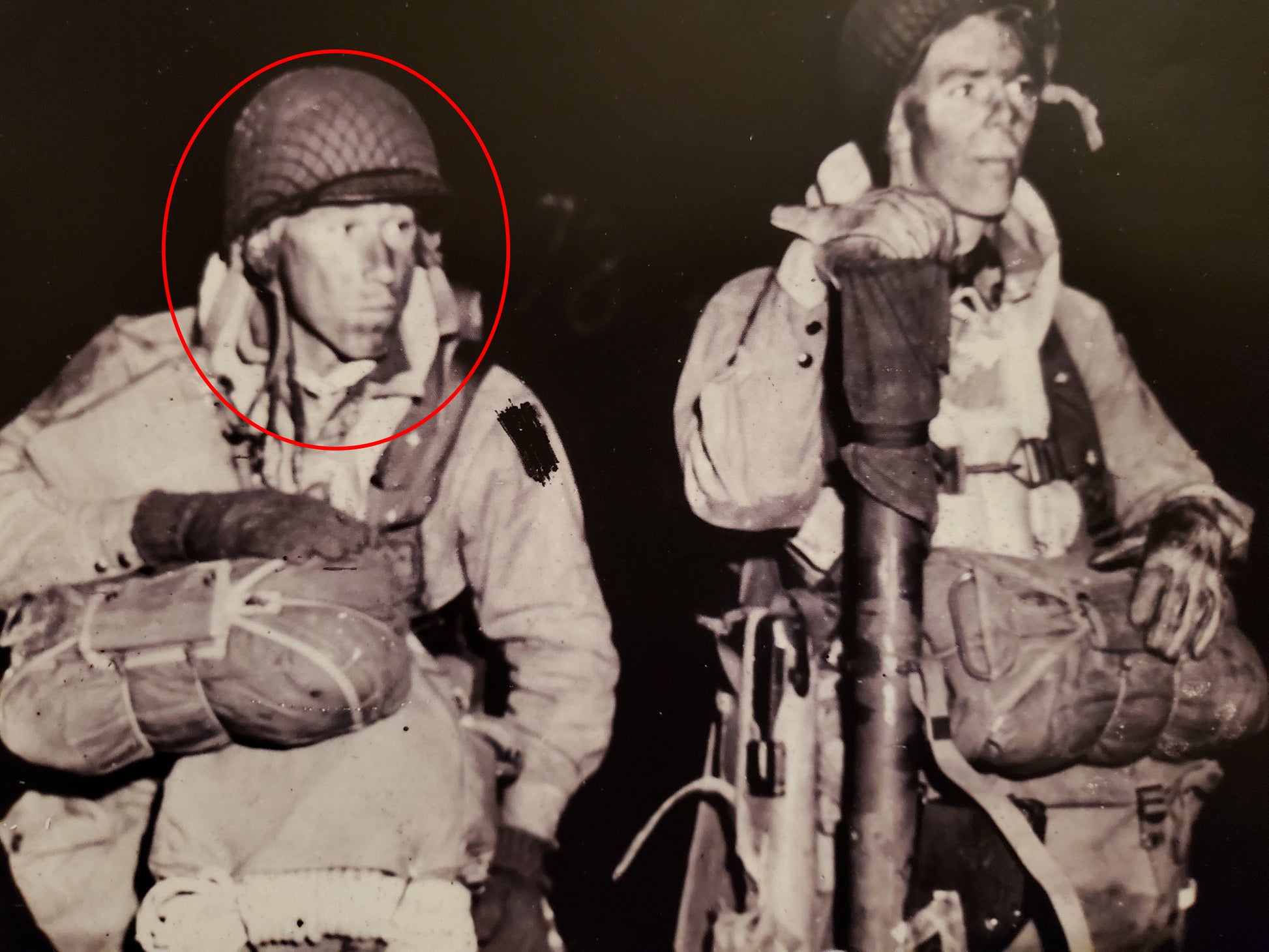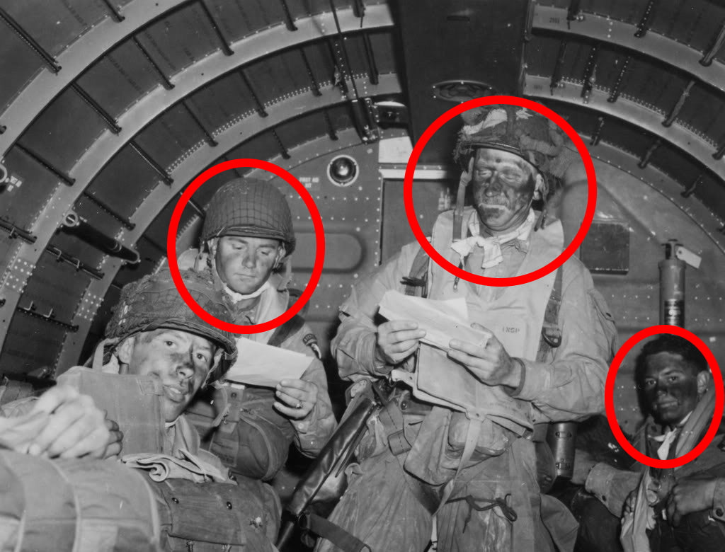The soft cotton/silk fabric makes for a comfortable scarf as seen in many original photographs which helped prevent chafing on the wearers neck from the abrasive wool collar of the wearer's service shirt. These reproductions have an "unfinished" edge just like originals. If you look at the attached original picture of 1st Lt. Carl Macdowell on his C-47 before taking off for D-Day, you will see the unfinished edges of his map starting to fray. (Note: If you would like to prevent the edges of your map from fraying simply fold the edges and sew them down)
