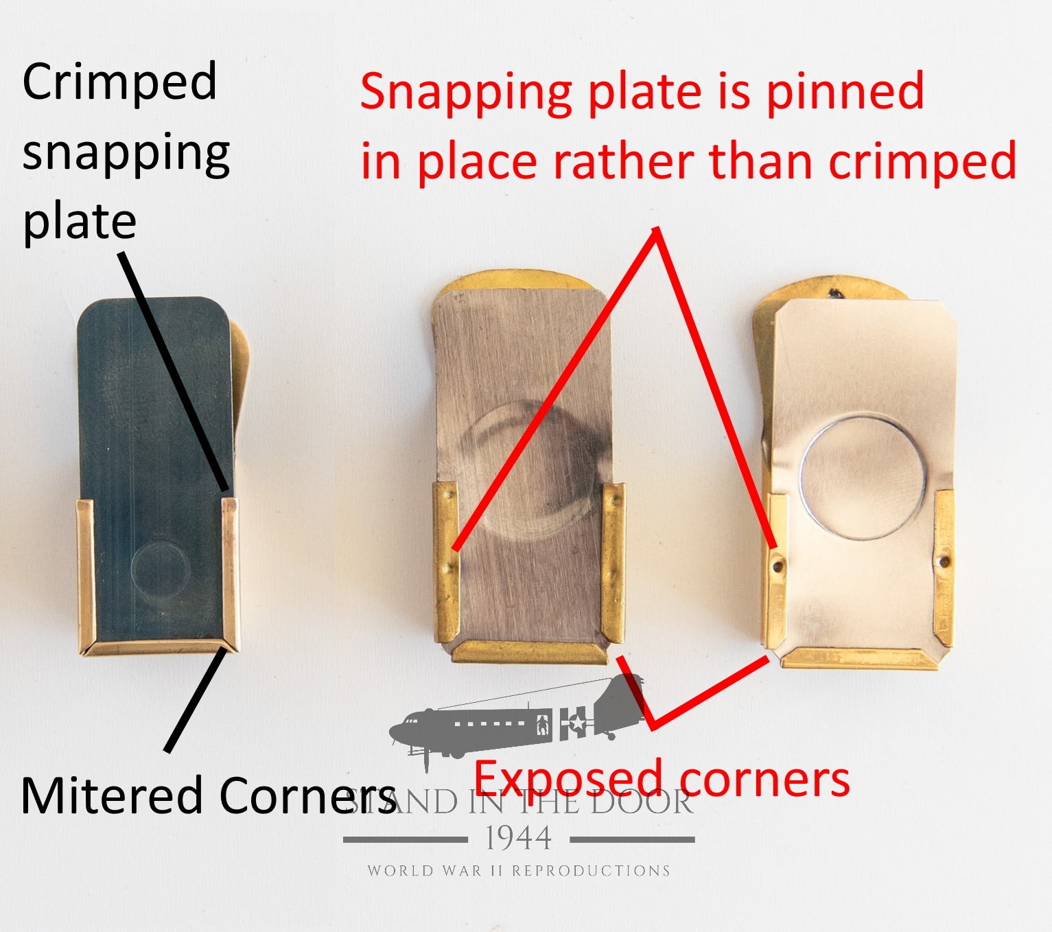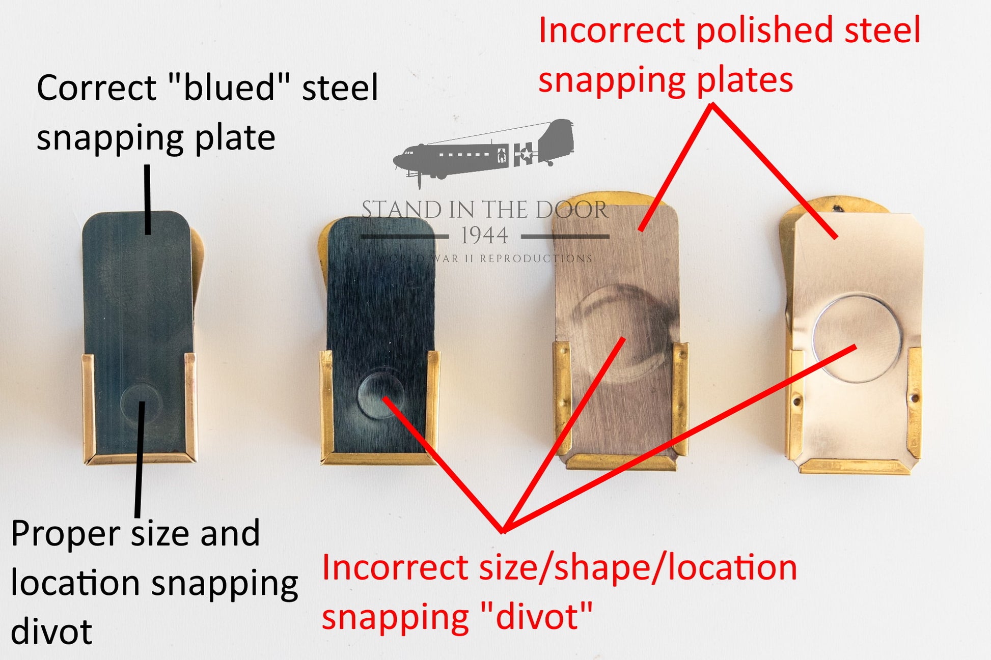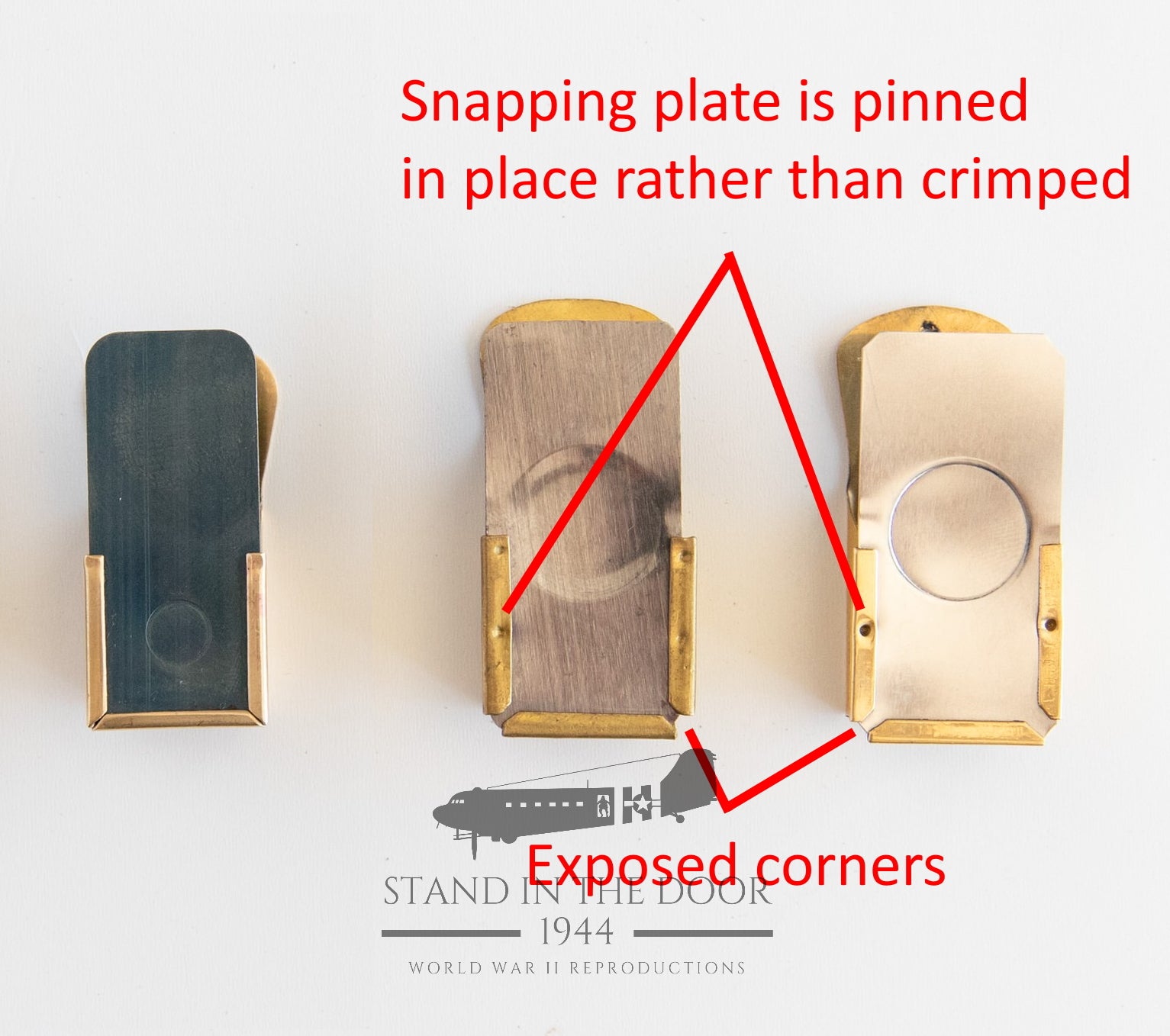 Then there was the snapping plate. Original crickets used a snapping plate that was made out of blued (gun metal blackening) so that they did not shine as much in the dark. Also the snapping divot was about the size of the head of a pencil eraser. 90% of reproduction crickets use a shinny piece of steel which has a very large snapping divot that is about the size of a dime. This differing shape of the divot also makes them sound quite different than originals.