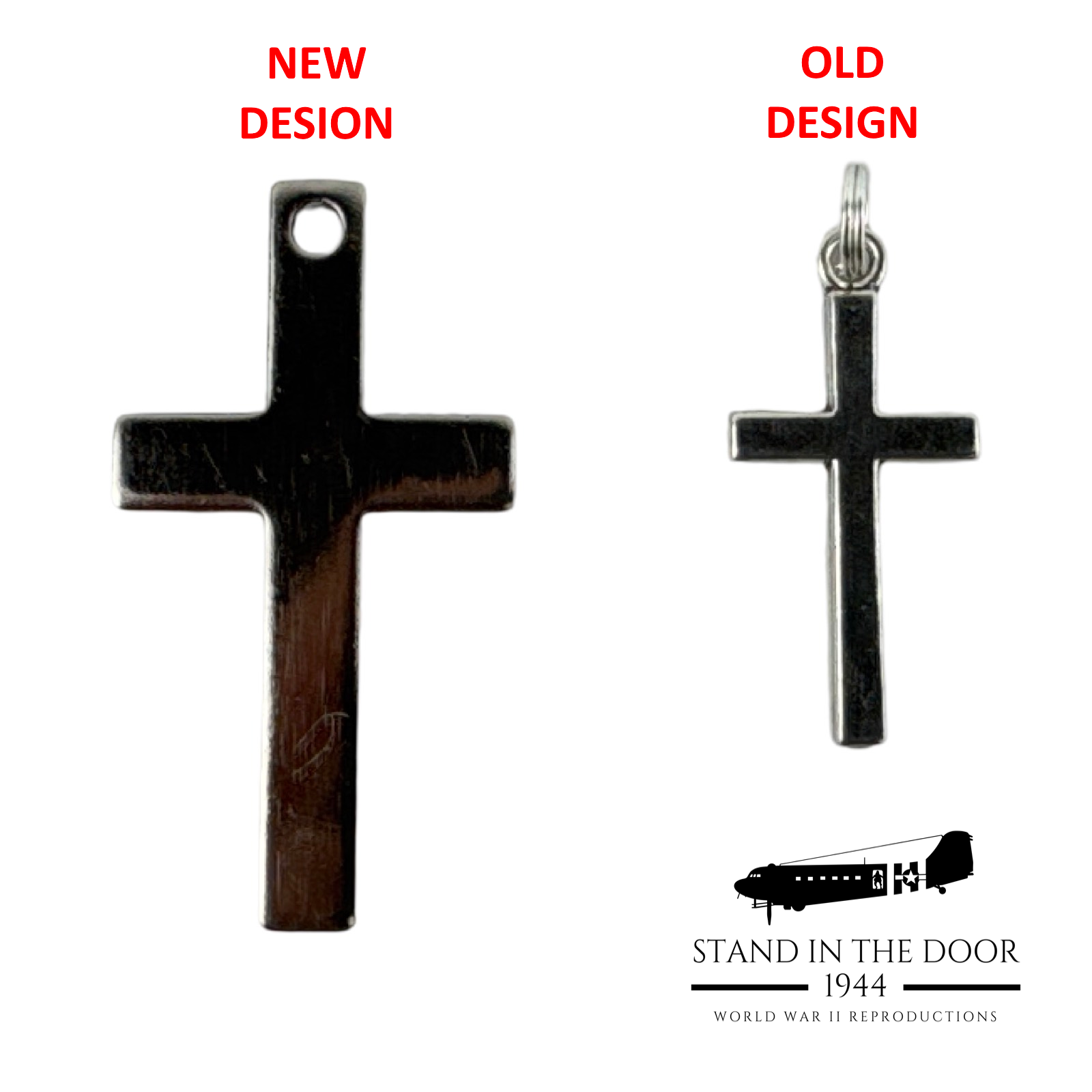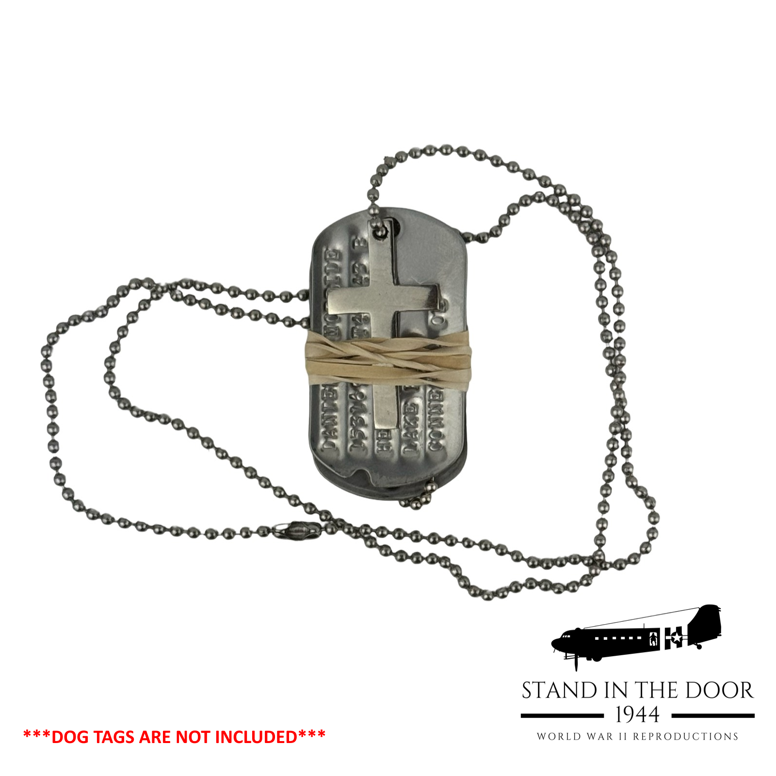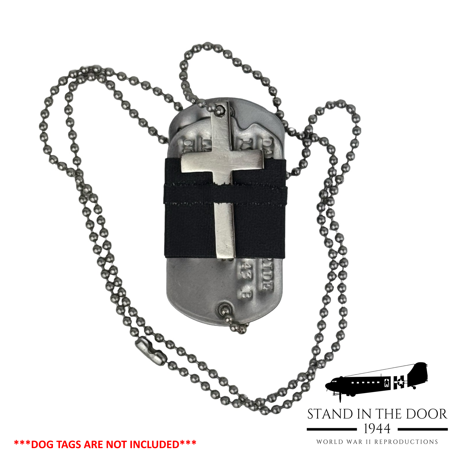 Crosses, Crucifixes', and Stars of David were commonly worn on or alongside military dog tags to give soldiers a reminder of their faith in the midst of the toughest situations life could throw at them. Faith was a cornerstone in the lives of many WWII veterans as it is for many who have served our country, the same is true for us at Stand in the Door 1944. That is why it is our pleasure to bring you these beautiful "dog tag" crosses. Cut and polished from stainless steel, these crosses were designed specifically by us to fit perfectly with USGI dog tags.
