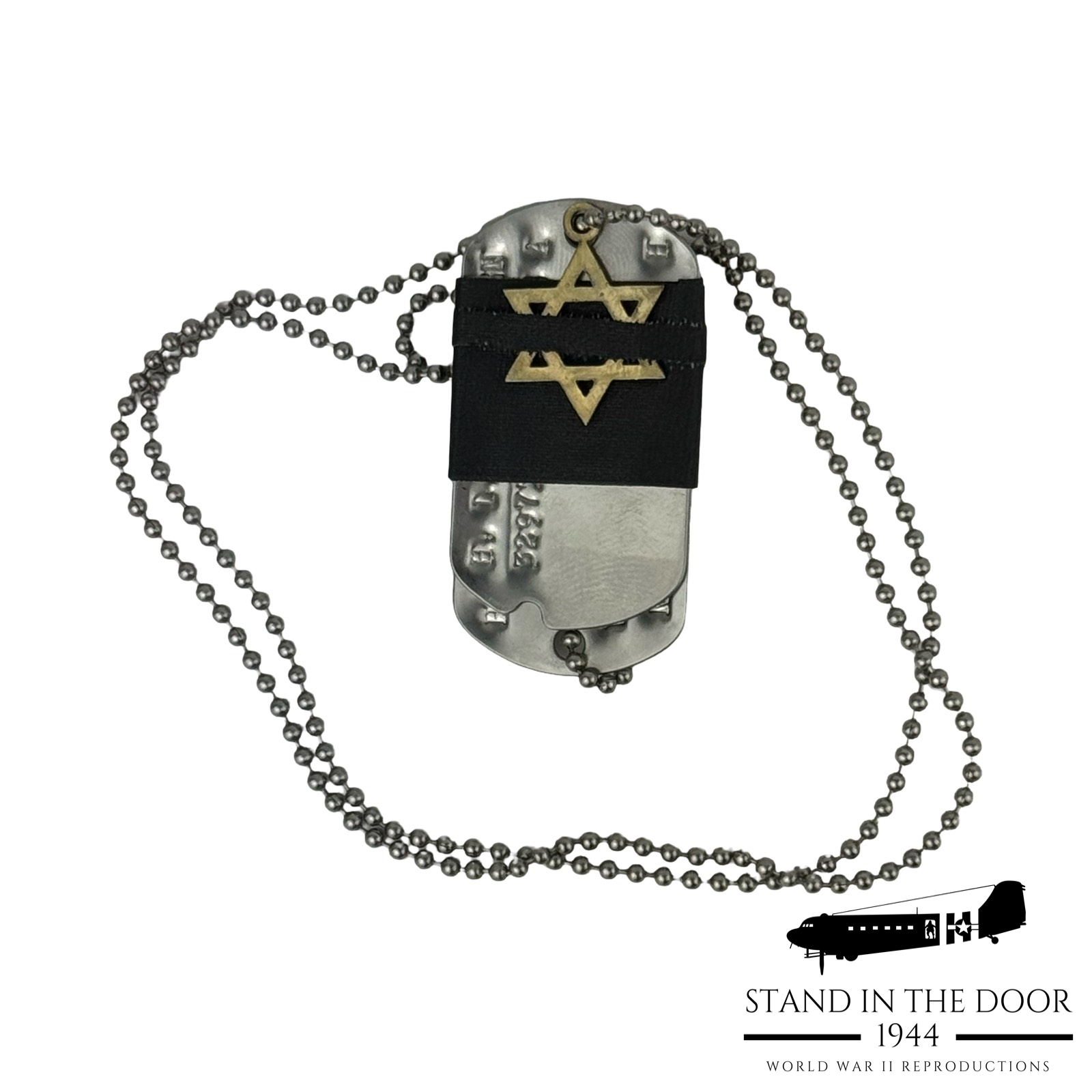For those Jewish troops fighting in Europe, many of them were encouraged to hide proof of their faith in case they were captured by the Germans. At their request Jewish troops were given new dog tags and ID cards that either had no faith marked on them or were changed to Protestant or Catholic. However many Jews were proud of their faith and kept their originally marked dog tags and in some cases wore a Star of David pennant like this.