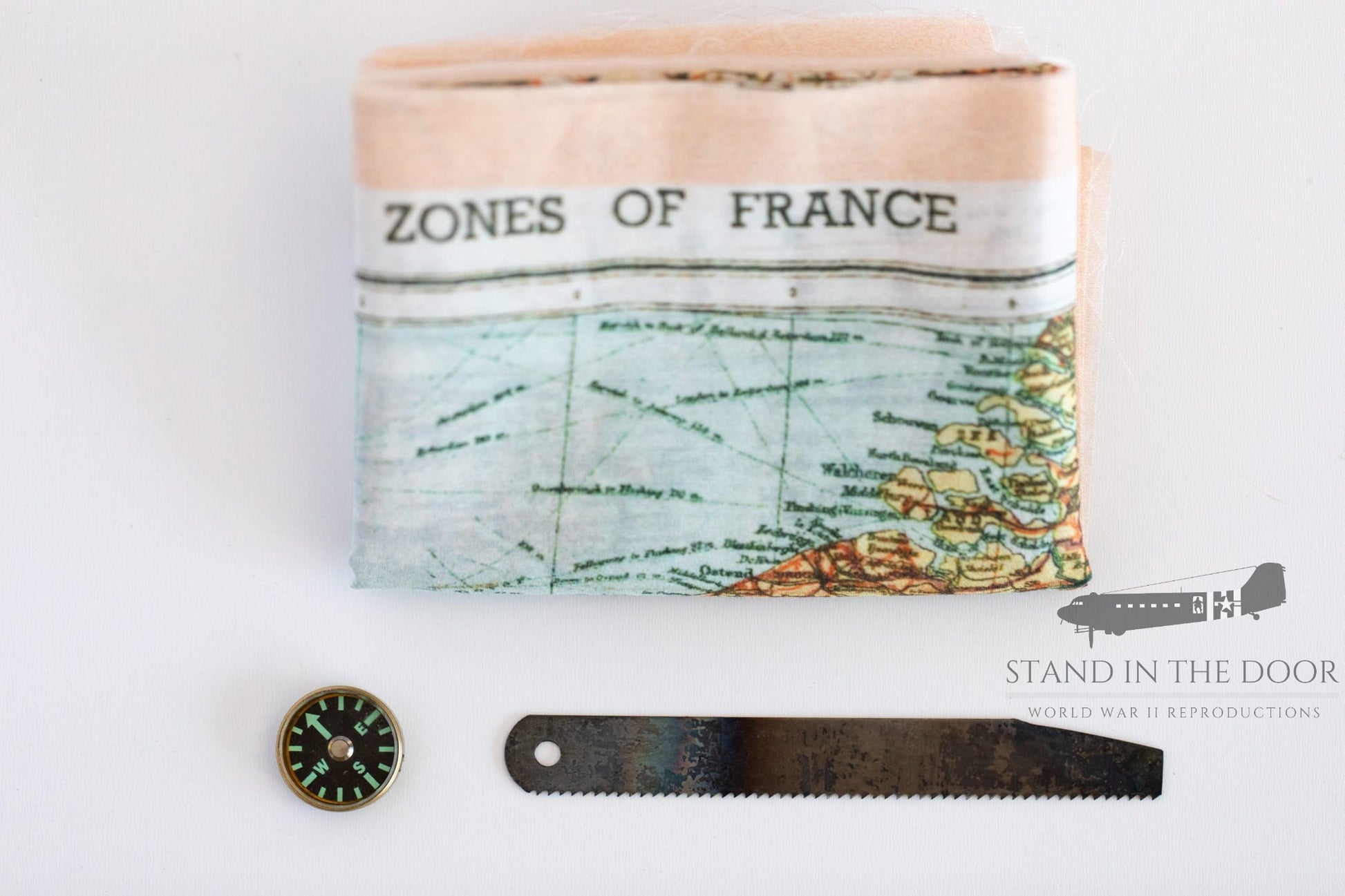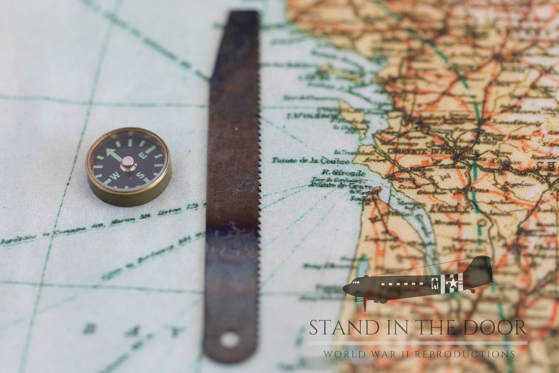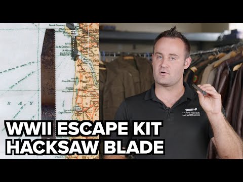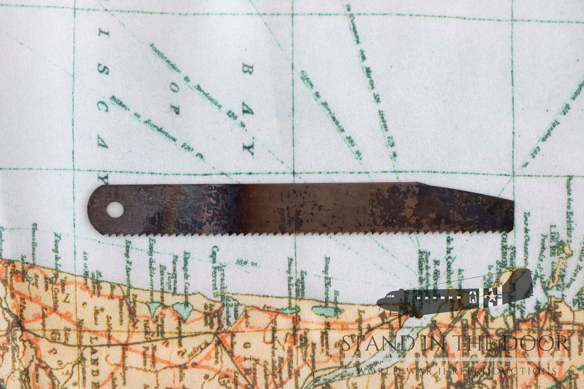 The highly sought after hacksaw blades that were issued in WWII Escape and Evasion Kits to aid shot-down aircrew and paratroopers while behind enemy lines. These blades were meant to cut through bindings, locks, jail bars etc in case of capture. The contents of escape kits were often hidden somewhere on the soldier's person such as sewn into the waist band of their trousers, jacket hems, or stuffed into the top of their boots.