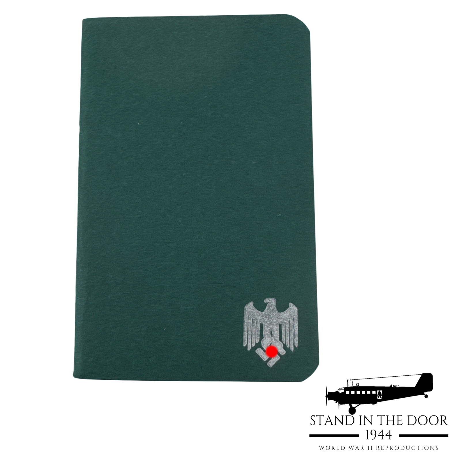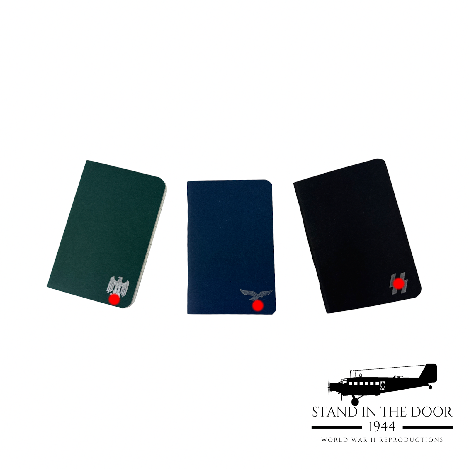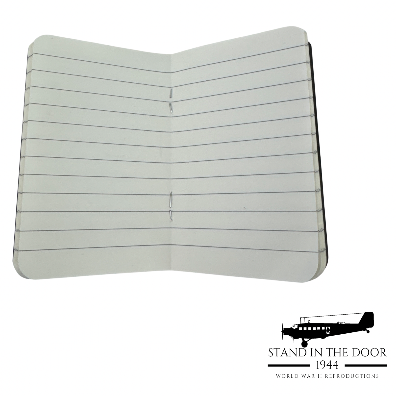 These small notebooks are approximately 2.5"x4" and can easily fit in almost any WWII uniform pocket comfortably and holds 30 lined notebook pages bound in a period correct cardstock cover.