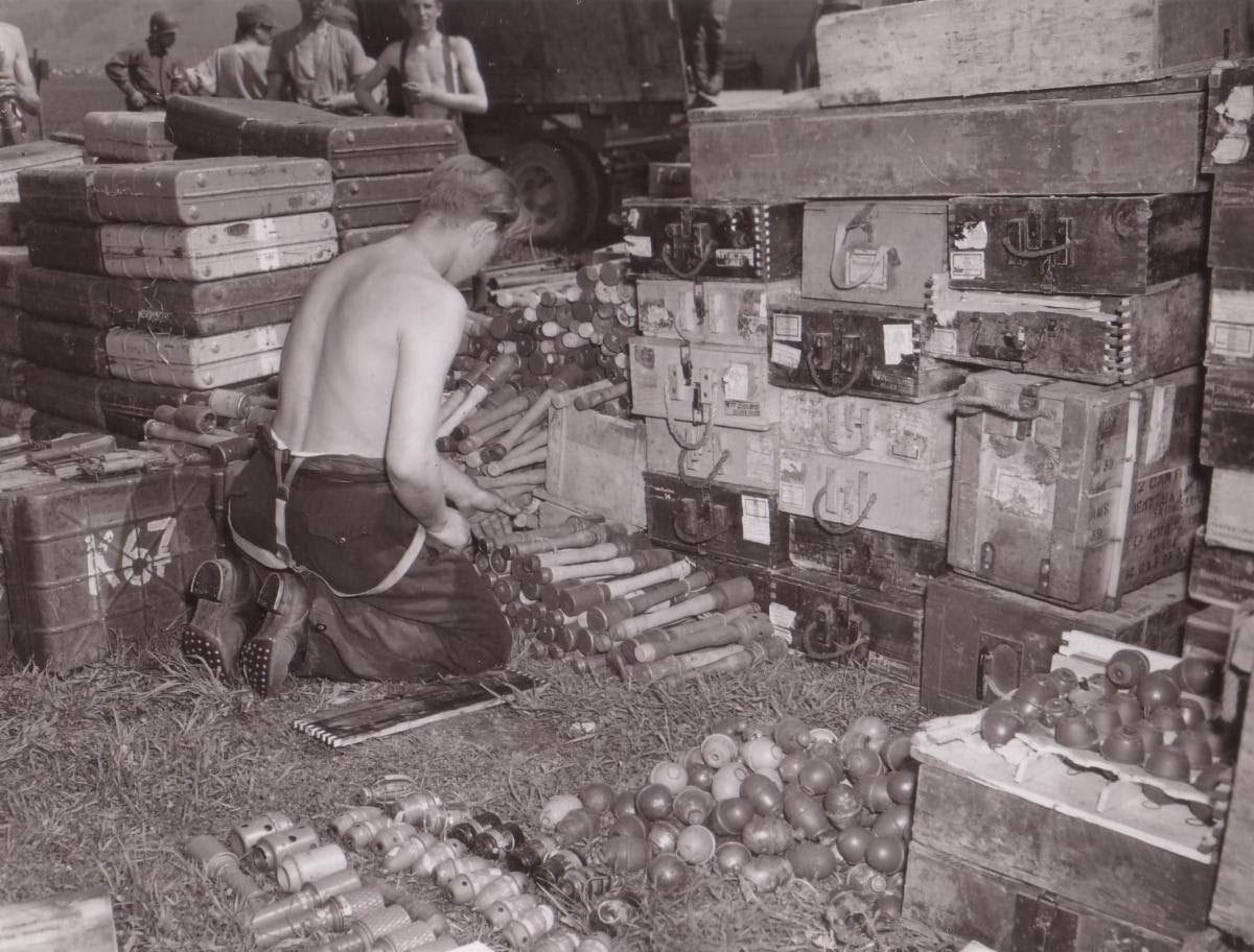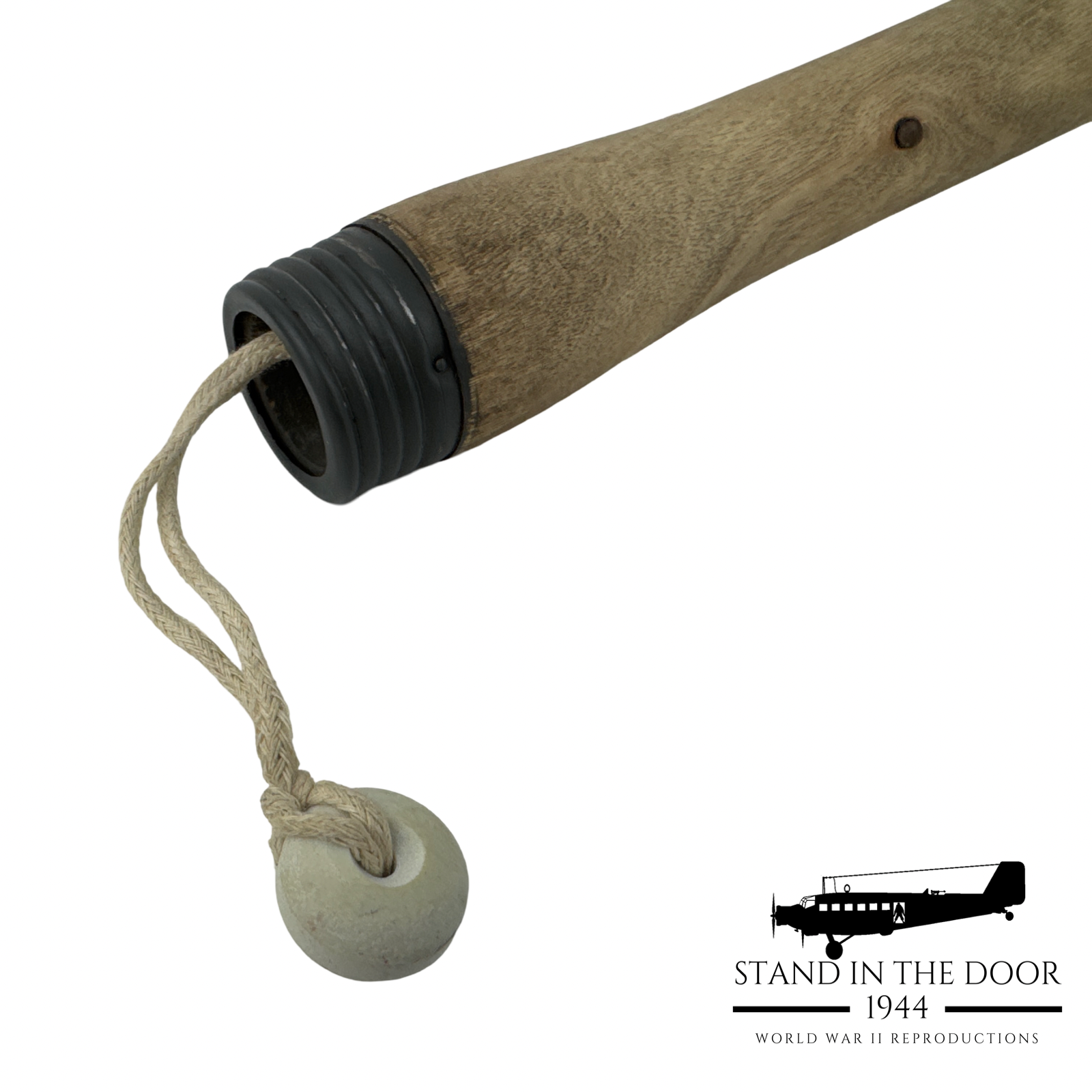 Steel "tail caps" unscrew to reveal a pull ball that was cast directly from an original example in our collection and are within a few grams of the original weight. The pull balls are attached with an all cotton string which matches the braid of many original examples and is tied with the same knot used during the war. Additional the pull balls can actually be pulled to simulate activating the grenade for demonstration purposes or for theatrical productions.