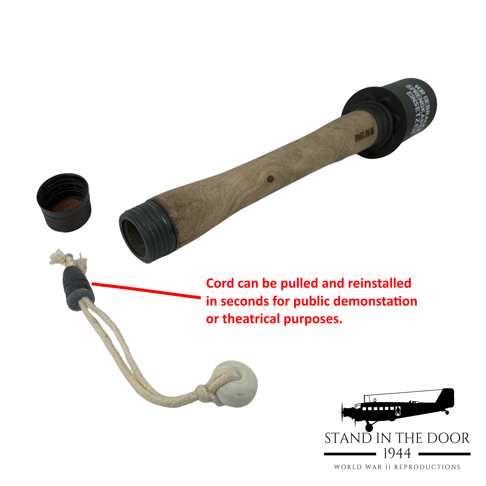 - Pullable cord- the pull cord is secured by a resin cast stopper which allows the cord to be pulled for public demonstration or film use to mimic the look of activating an original M24.