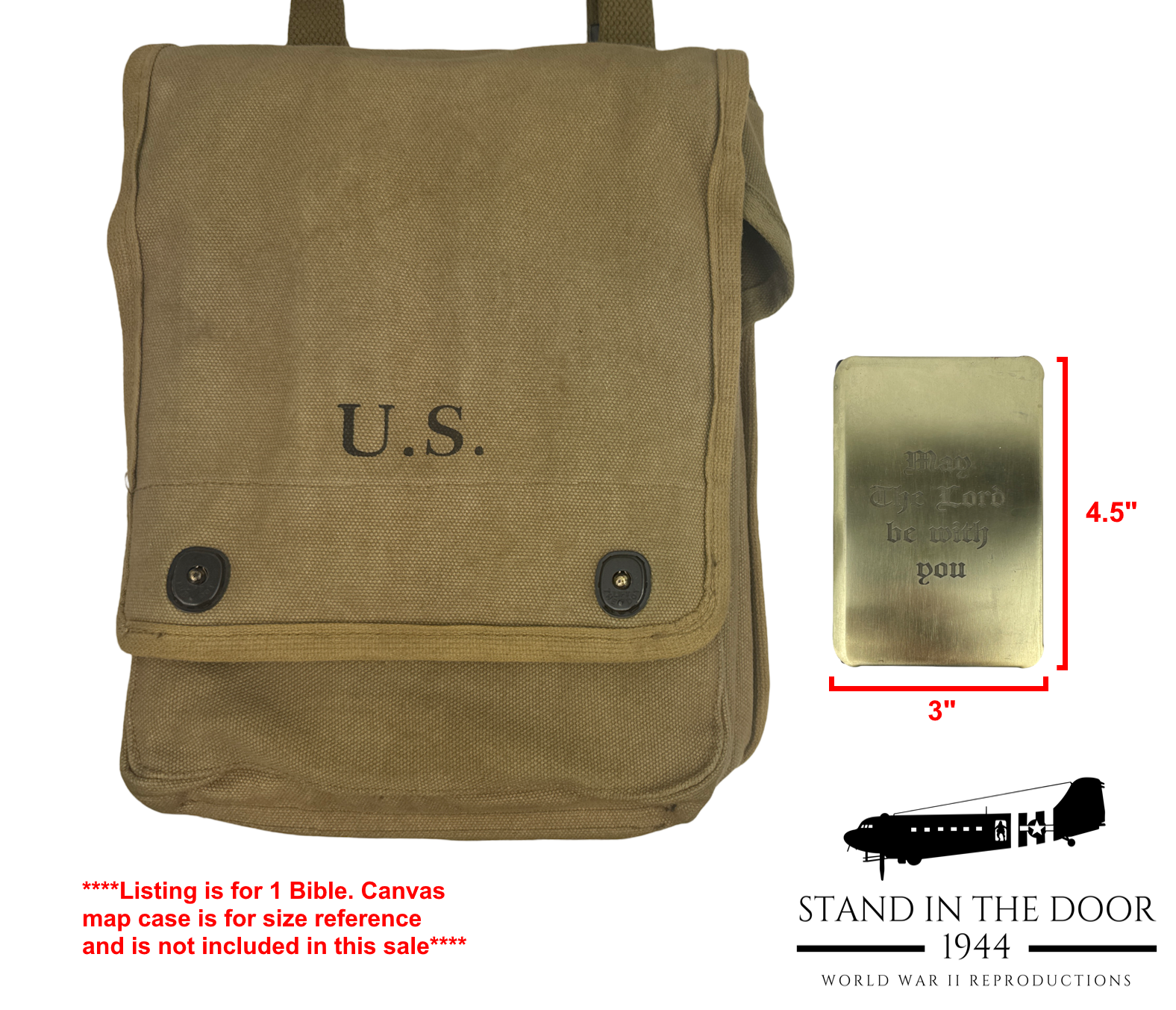 ****These reproductions are not intended to be bullet proof!!! While these may deflect objects such as low caliber bullets or knives, these Bibles are not sold and a rated form of body armor. Never shoot a firearm at one of these Bibles as it may result in injury or death. Stand in the Door 1944 is not liable for any damage that may come to an individual, animal, or property do to being shot or hit with a bullet or any other object.****