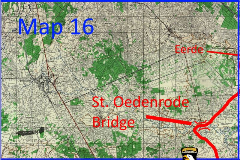 This map primarily shows the city of Hertogenbosch as well as the surrounding areas to the south and west including the bridge at St Oedenrode, which was a key objective of the 101st.