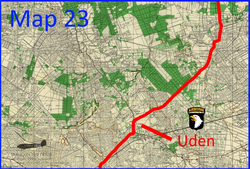 Reproduction "Uden" map in 1:25,000 scale. This map would have been the most common map from Division Headquarters all the way down to platoon leaders, company commanders, and senior platoon/company NCO's of the 101st Airborne Division during the opening stages of Operation Market Garden for land navigation and tactical movements.