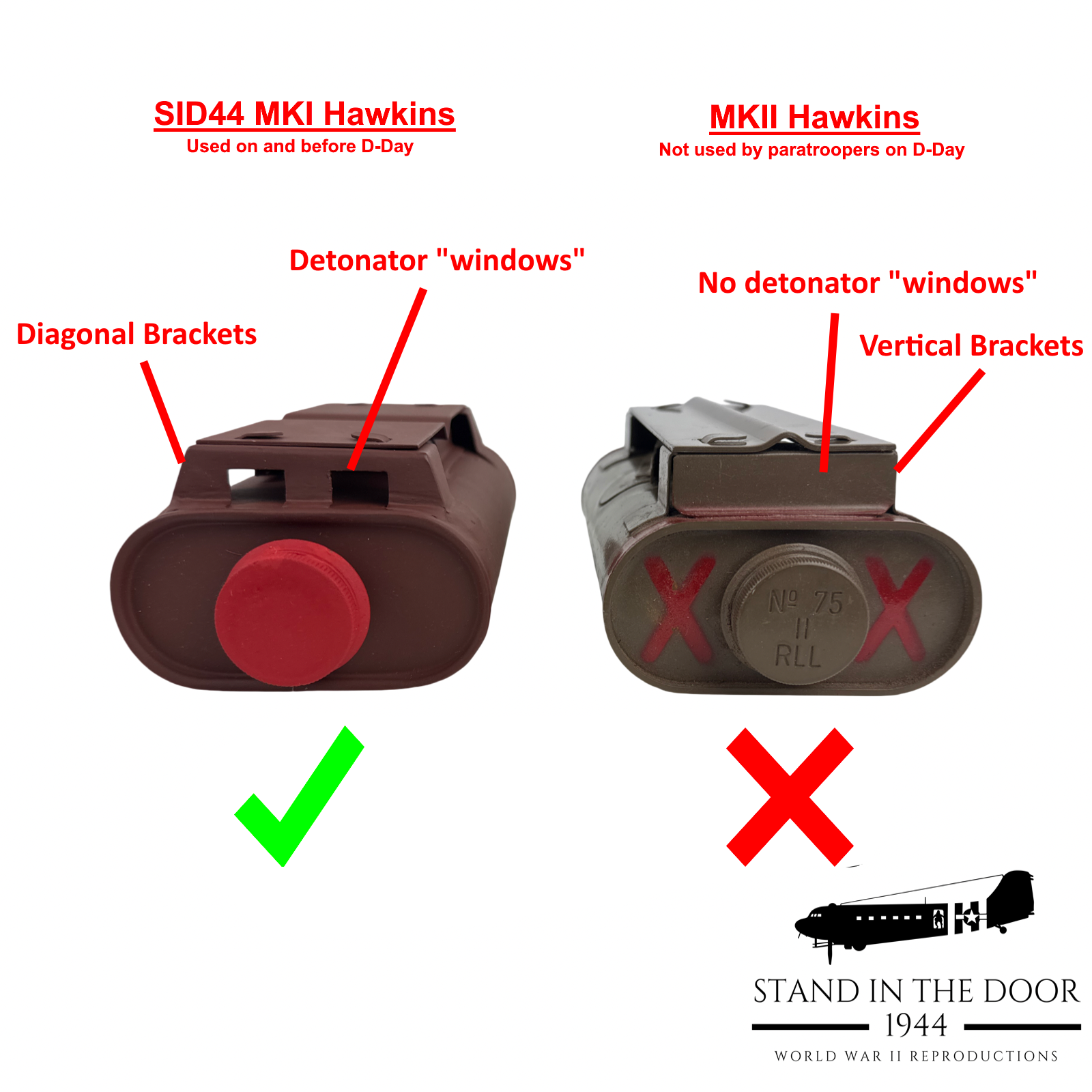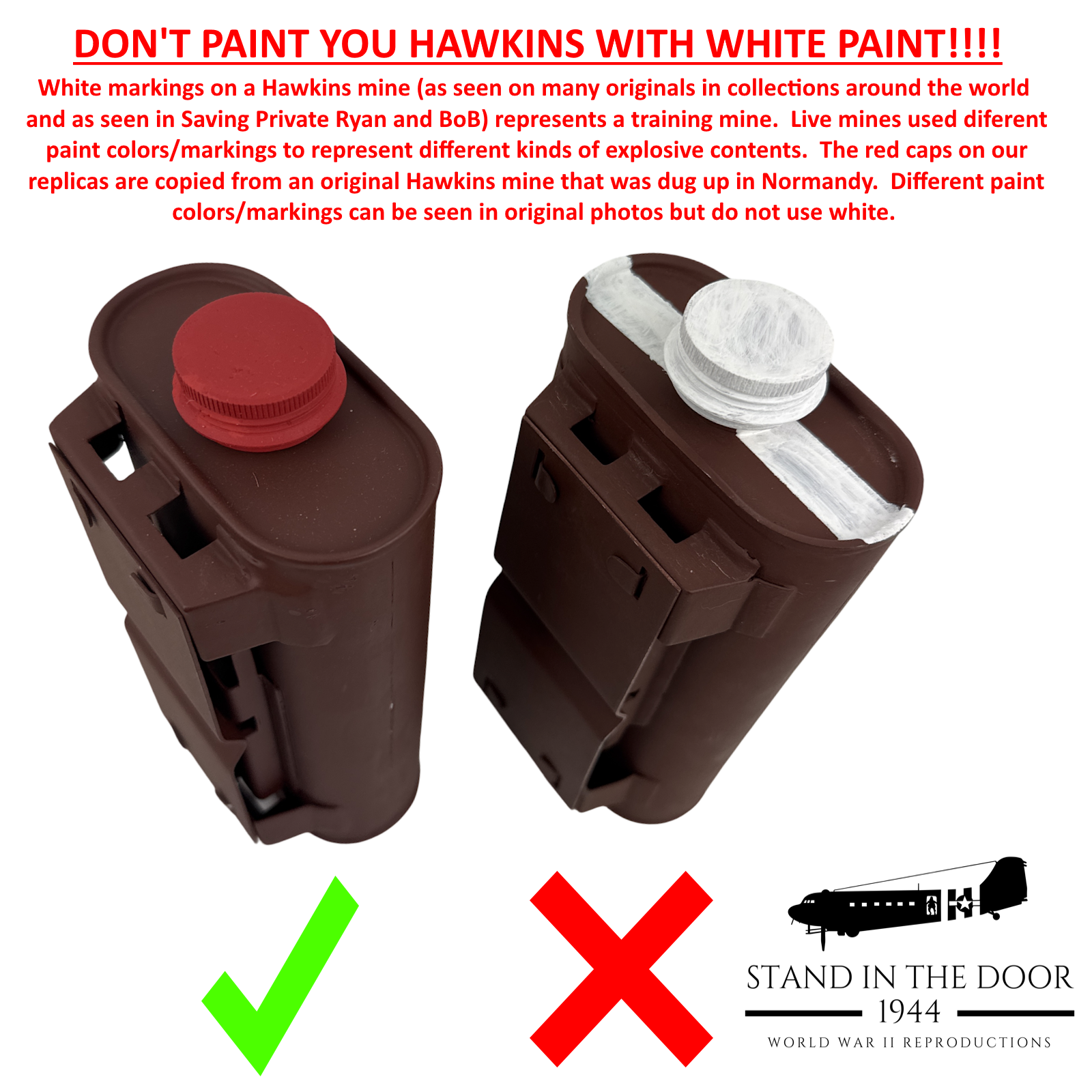The MKI Hawkins mine was a British made anti-tank mine that was used extensively by US paratroopers on D-Day but until now, no companies have replicated them. The replica Hawkins mines that have been available on the market for the past decade were the later MKII versions which look quite different than the MKI and they were not used by American paratroopers. After years of development we have finally succeeded in replicating the complete MKI Hawkins mine.