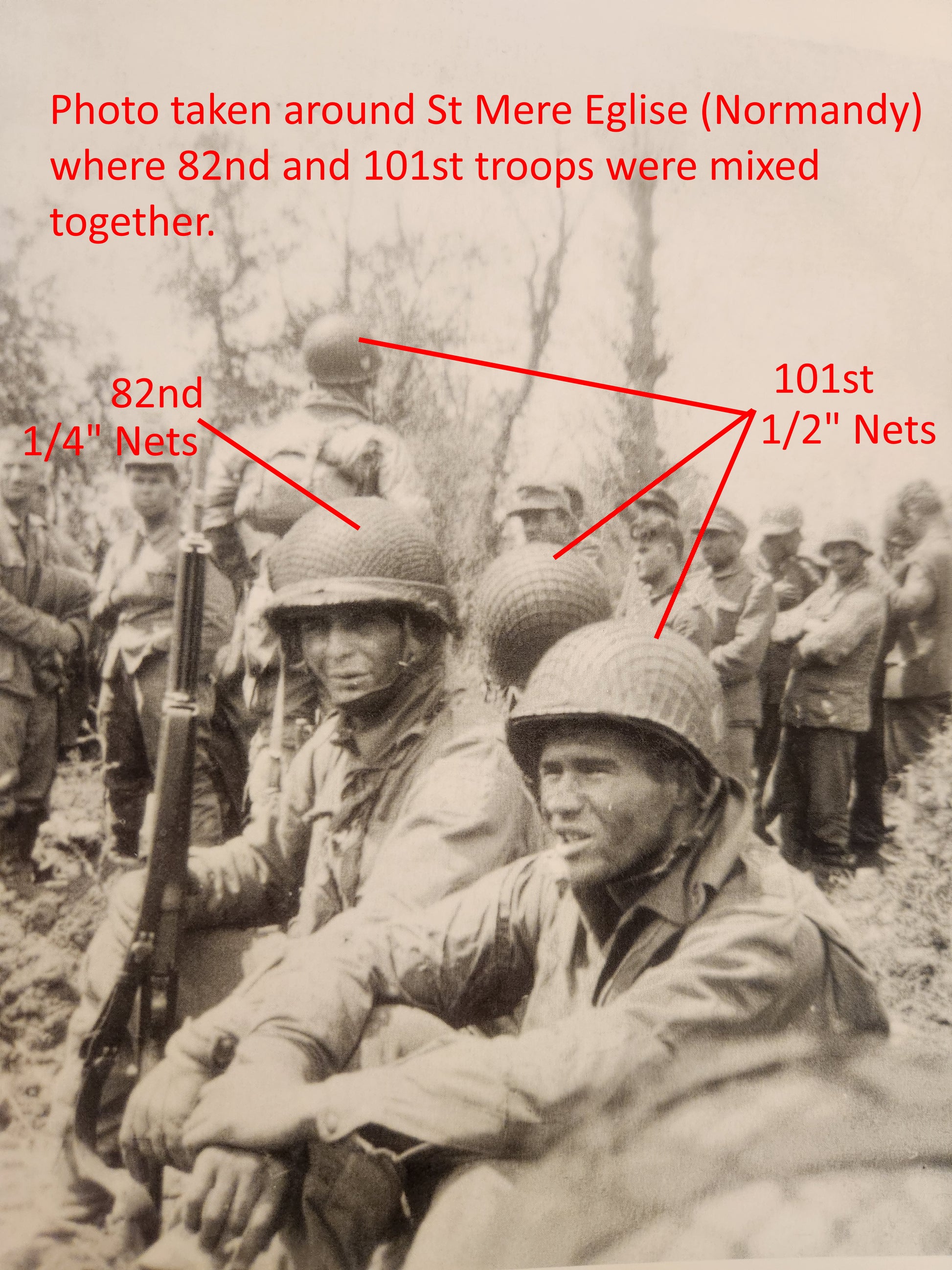 These nets are the "small hole" variant used by the 82nd Airborne and Rangers in Normandy, then later adopted by the 101st and most all other units around the time of Market Garden and was used until the end of the war.