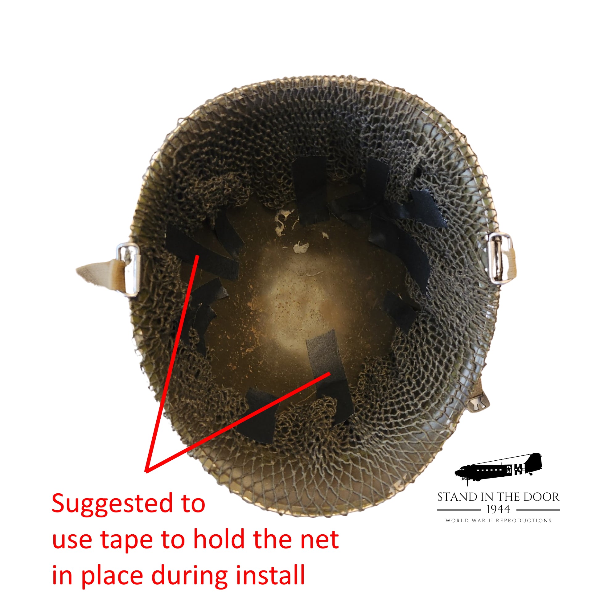 These nets DO NOT HAVE A DRAWSTRING and there for need to be put on the helmet a bit differently than other types of helmet nets. By far the most effective technique is to use some black fiber tape (accurate for WW2) to hold the loose ends of the net inside the helmet then install the liner which will keep the net in place. This produces the tightest and cleanest "finished" look on a helmet.