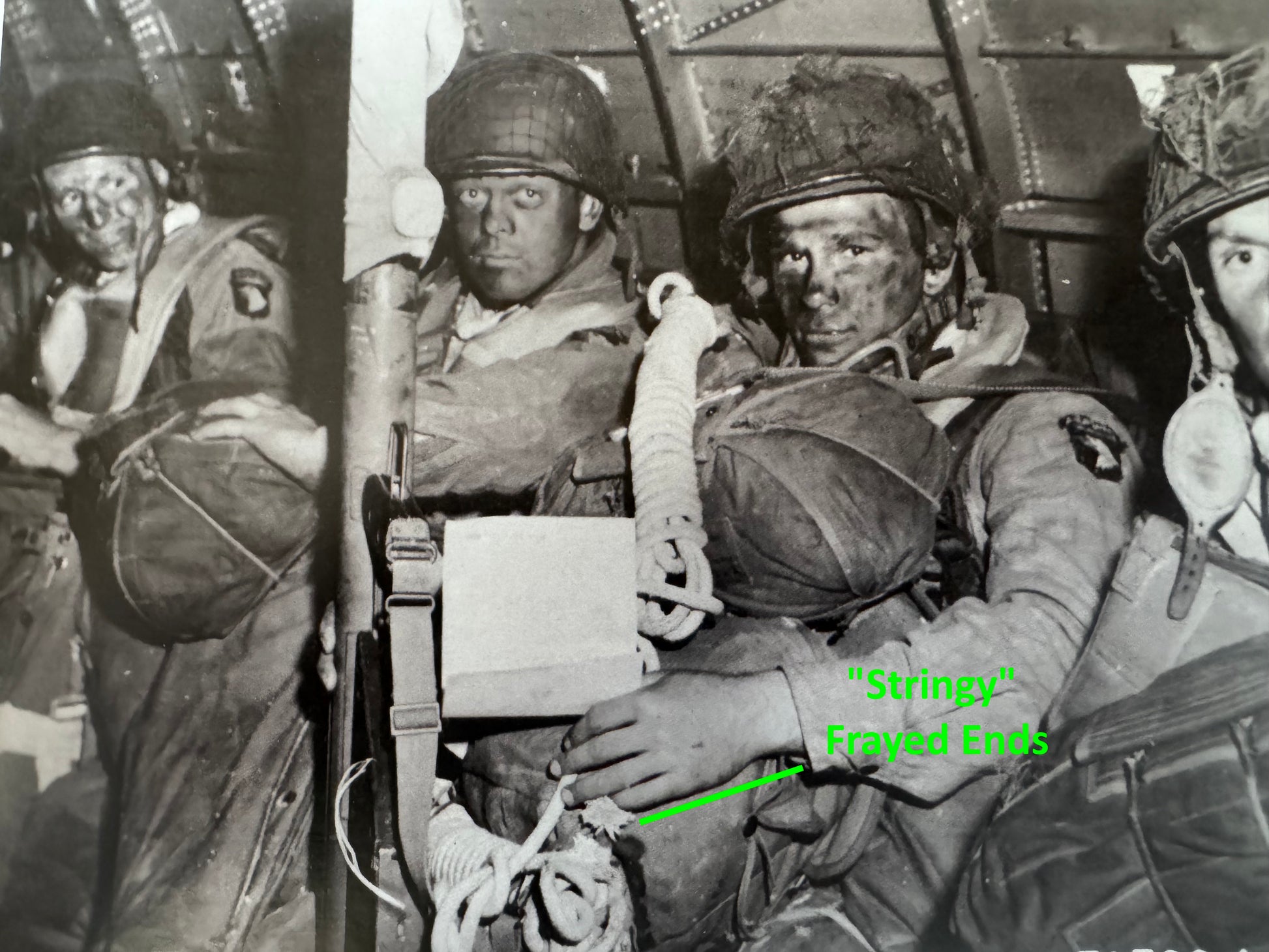 The "1st pattern" ropes that were being used by paratroopers on D-Day and in previous operations were so thin that paratroopers who used them to descend from trees complained of how difficult they were to grip, even with gloves. With this information the Army requisitioned rope that was almost twice as thick for future airborne operations, including Market Garden only a few months later.