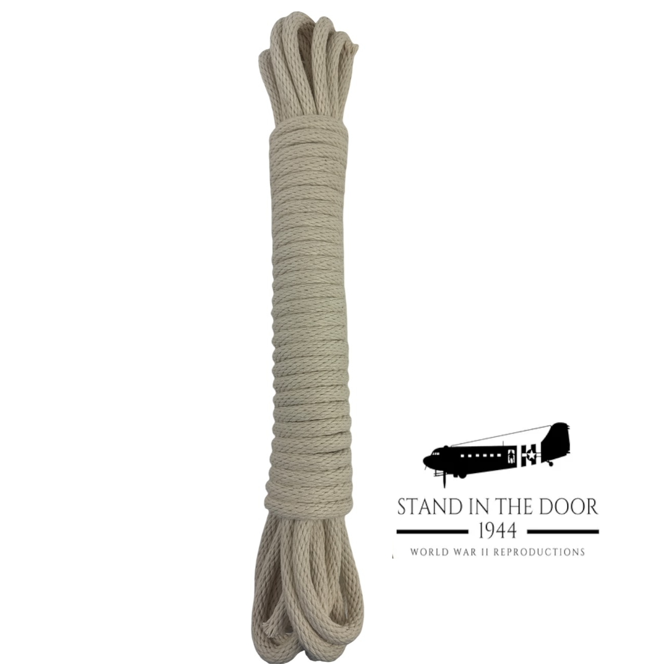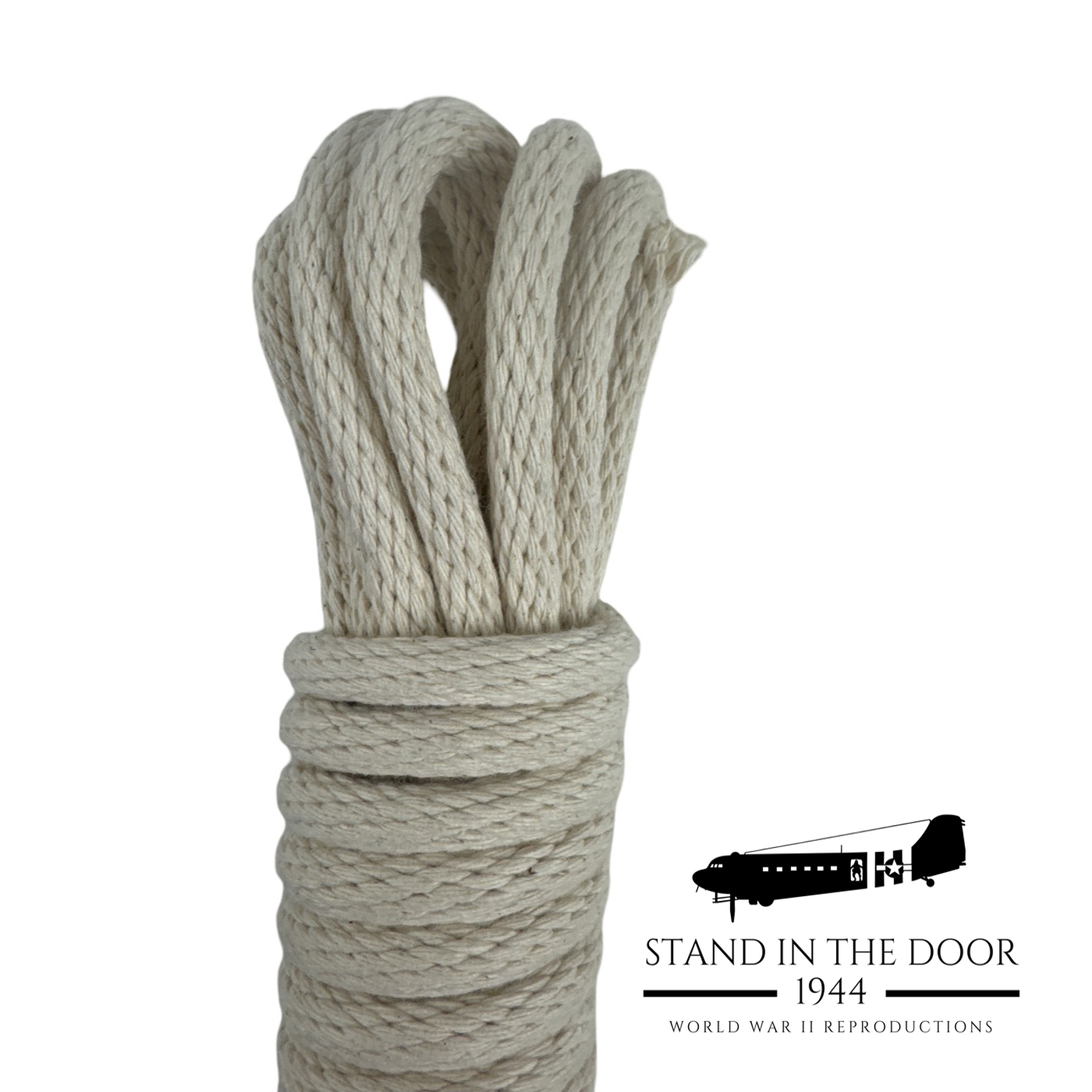 These ropes are some of, if not thee, most accurate reproductions let down rope on the market. These ropes are custom woven for us by a company here in the United States with 100% natural cotton material to match the thickness and braid of the original ropes issued to paratroopers for Normandy.