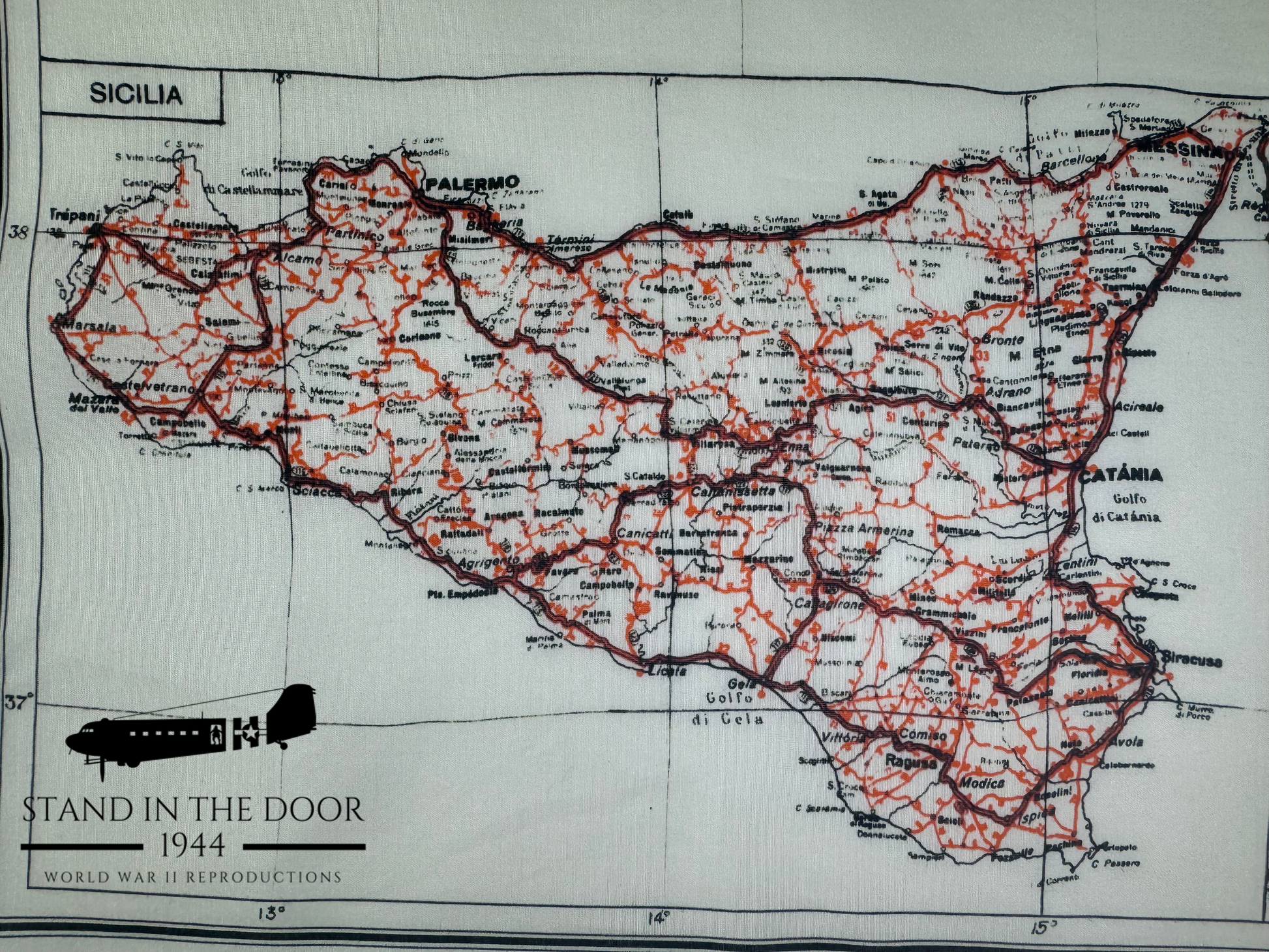These are museum quality reproductions of the highly sought after WW2 Italy/Sicily escape/evasion map issued to paratroopers and aircrews flying missions in the Mediterranean Theater during WW2. These maps were issued in escape kits along with a small compass and hacksaw blade (see my other listings) that service men could use in escape and evasion senecios.