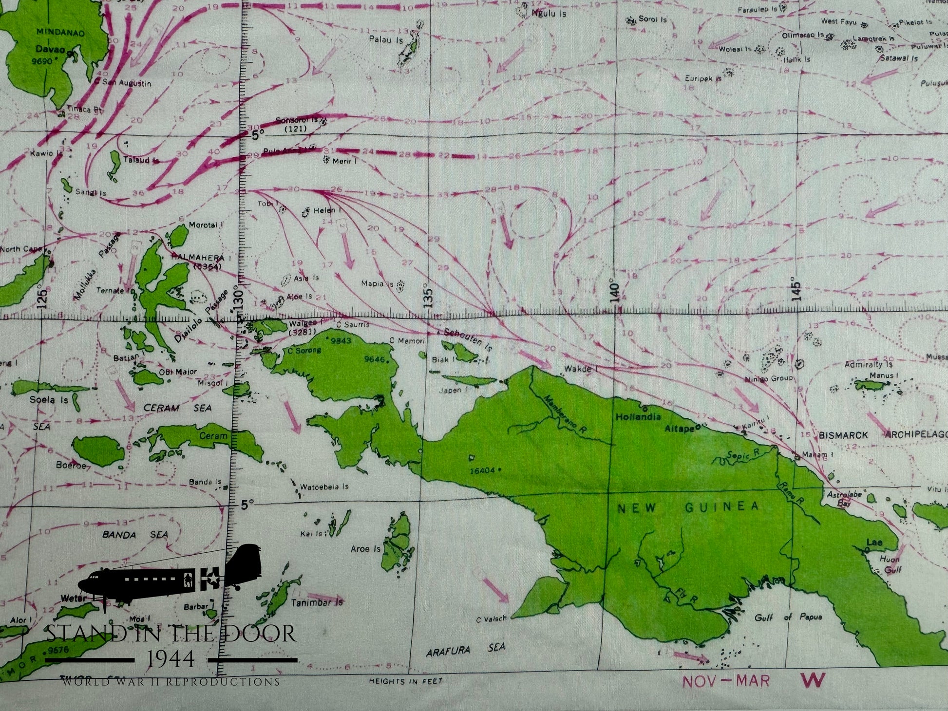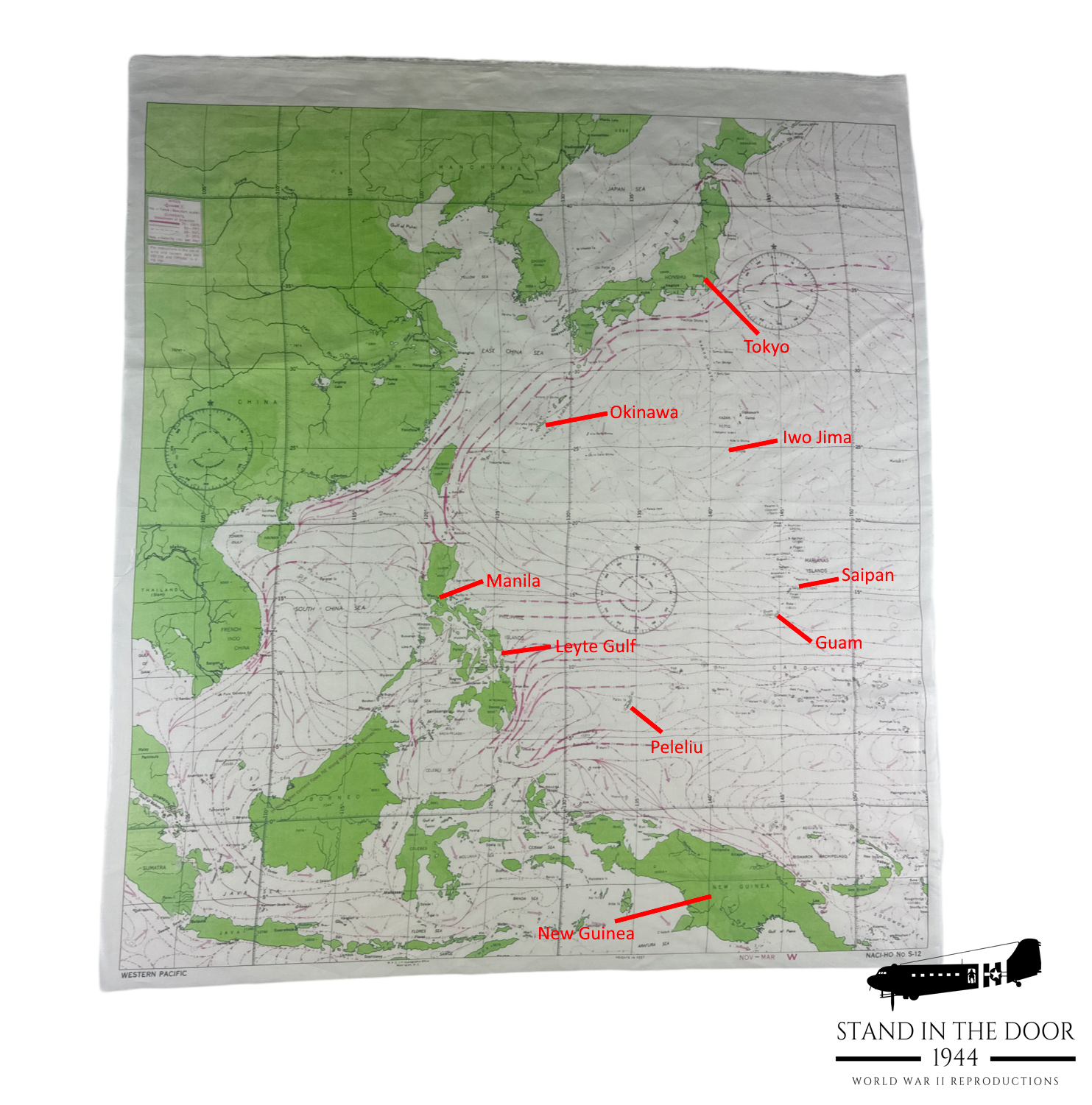 These are museum quality reproductions of the WW2 Western Pacific escape/evasion map issued to aircrews flying missions in the PTO during WW2. These maps were issued in escape kits along with a small compass and hacksaw blade (see my other listings) that service men could use in escape and evasion senecios.