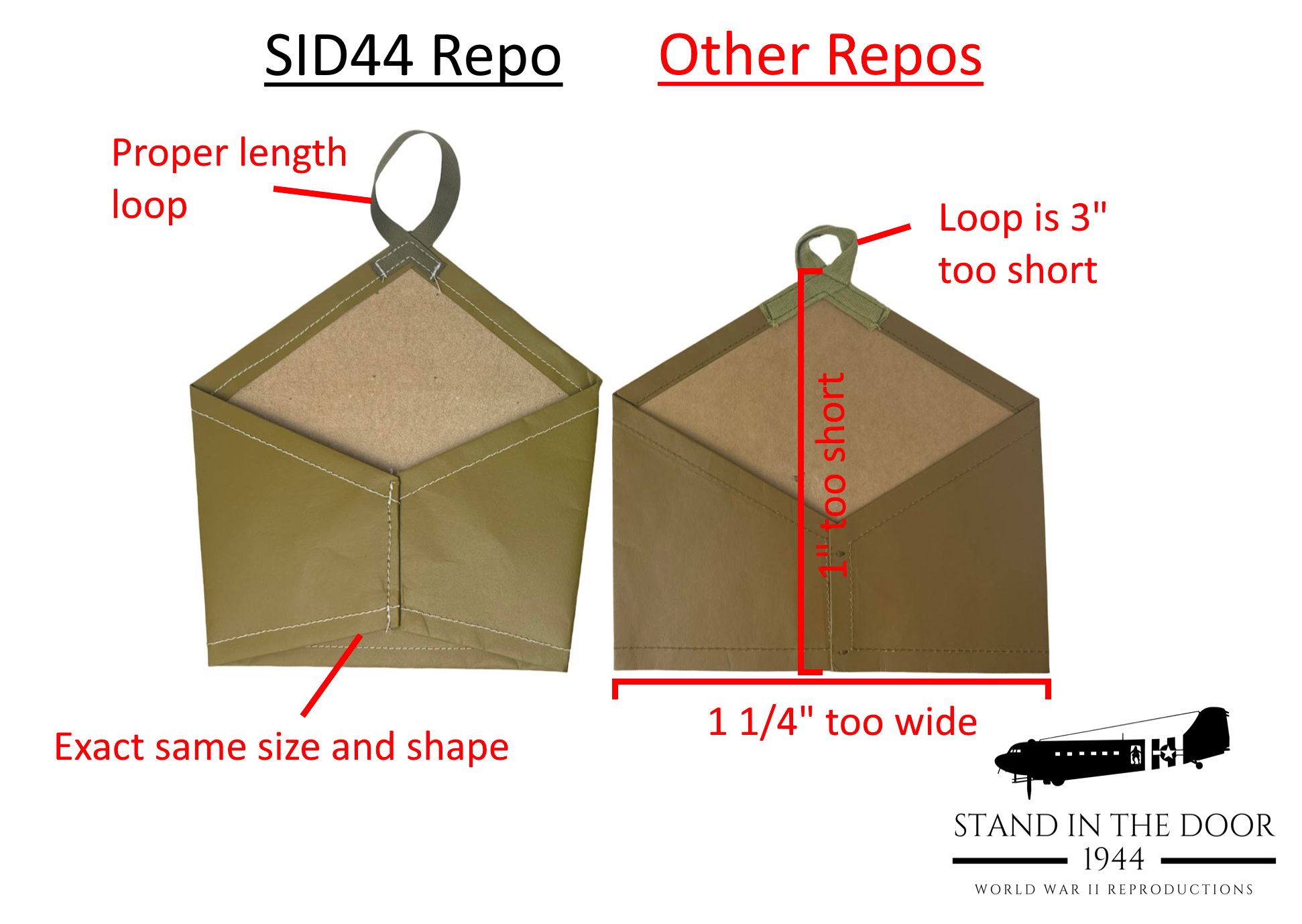 Almost all repo gas brassards are not patterned off an original brassard. They simply buy a repo from another company and copy it and the laws of duplicity ensue resulting in brassards that do not fit your arm properly and hang off the shoulder and a bazar angle. We patterned our brassards 1:1 off an original and we use steel cutting dies to ensure that each brassard we make to fallow the same pattern.